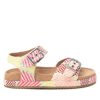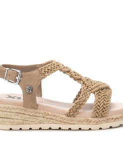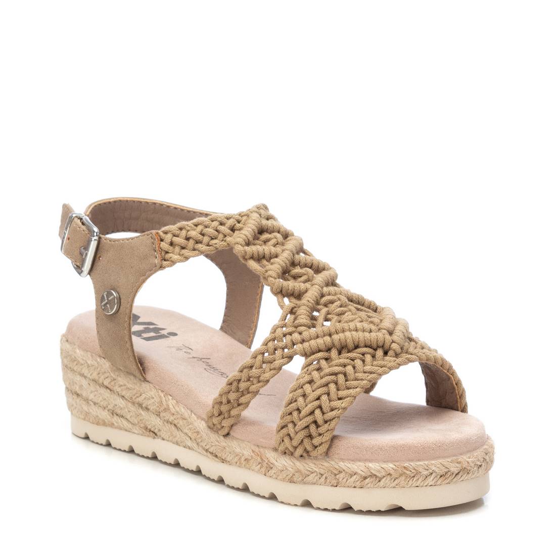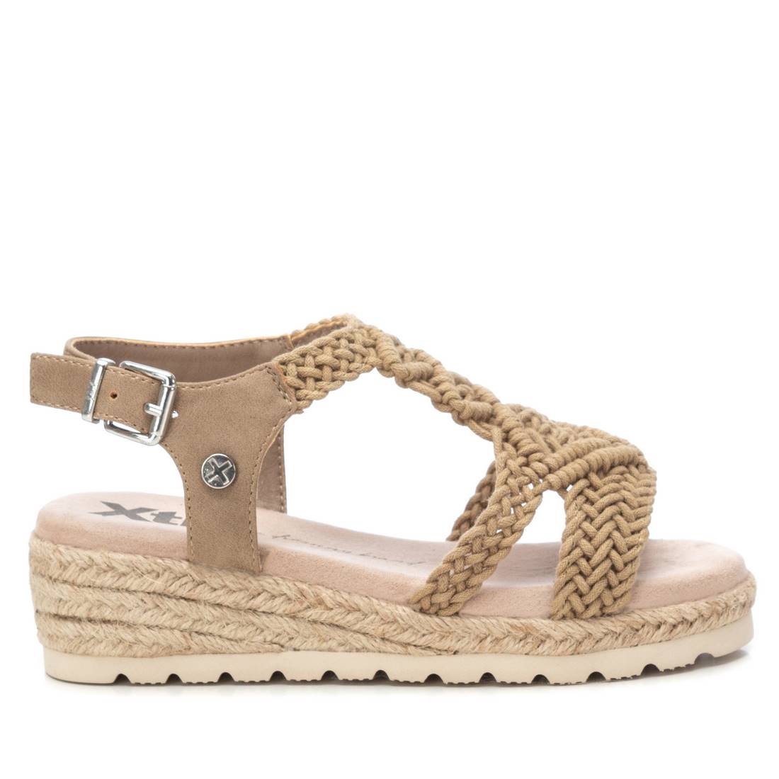 Sandalia de niña de la marca Xti kids. Fabricada con material textil tipo crochet. Pulsera con material que imita la piel con hebilla metálica para sujeción al tobillo. Cuña de yute con suela de goma antideslizante. Ideal para los looks mas veraniegos.