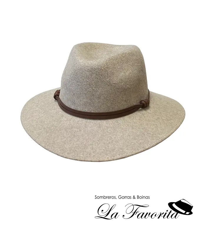 Sombrero lana flexible jaspeado ala ancha cinta cuero-Miralles