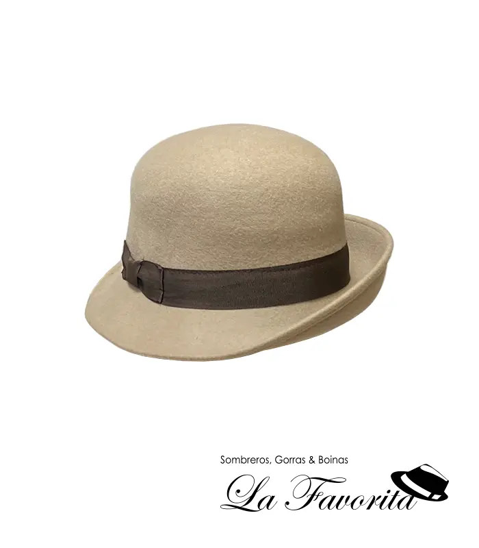 Sombrero de mujer con ala corta y copa redonda. Modelo casquete. Hecha 100% con Fieltro de lana. Al ser de fieltro, el sombrero es completamente impermeable.
