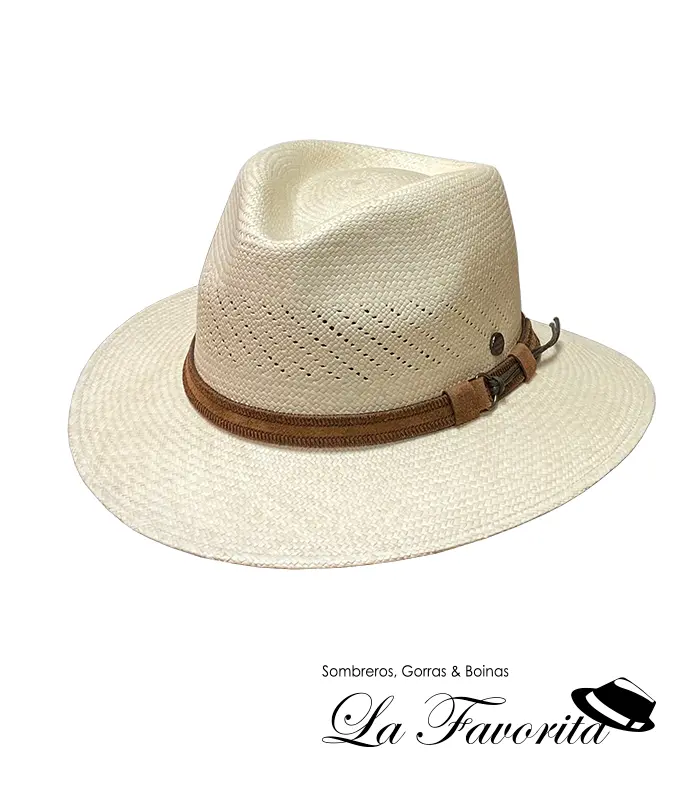 Panamá de Ala Ancha Bajada con cinta de cuero