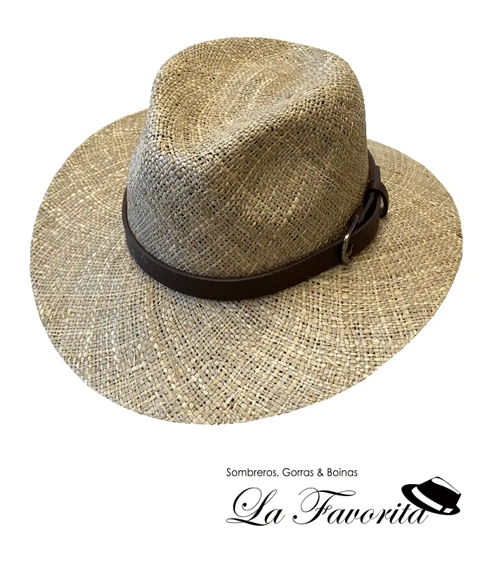 Sombrero Indiana de ala ancha hecho 100% de paja natural. Modelo Indiana con cinta de cuero.