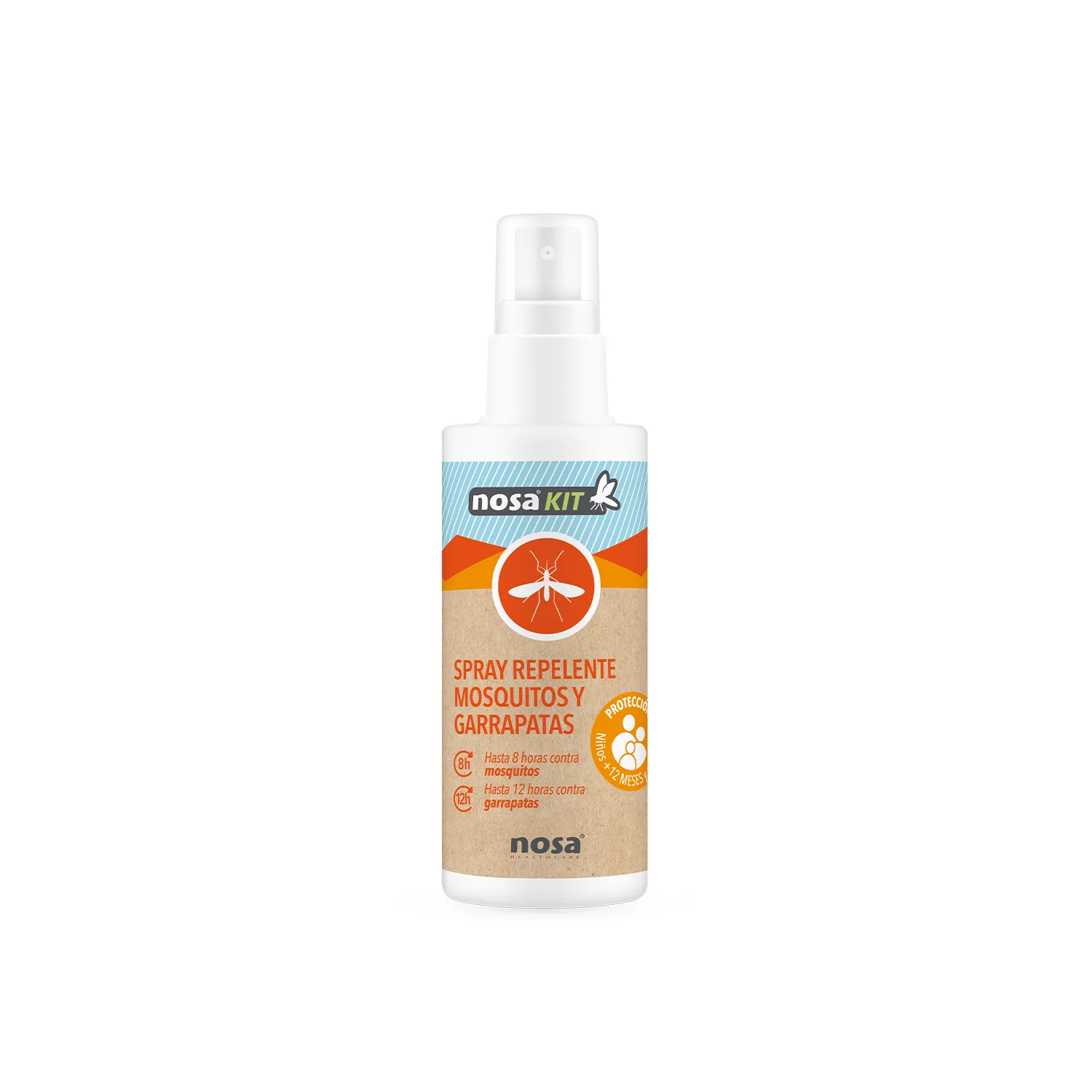 El spray Repelente de mosquitos y garrapatas NosaKits de VCS Pharma es un repelente eficaz que protege a toda la familia. Hasta 8 horas contra mosquito común (Culex pipiens), mosquito tigre (A. albopictus), mosquito Aedes aegypti y mosquito Anopheles. Eficaz hasta 12 horas contra garrapatas (Ixodes).