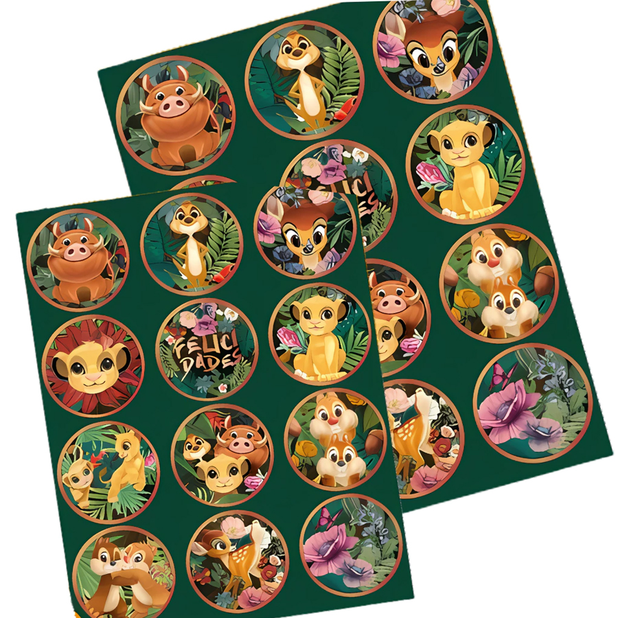 Stickers Autoadhesivos Disney Clásicos Animales de la Selva Rey León Bambi Simba Timon y Pumba x24 Unidades Licencia Oficial