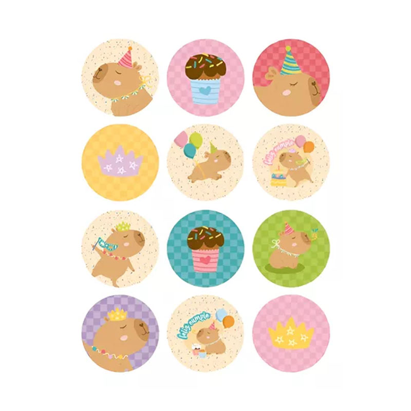 Stickers Autoadhesivos Capibara Carpincho Cumpleaños x12 Unidades