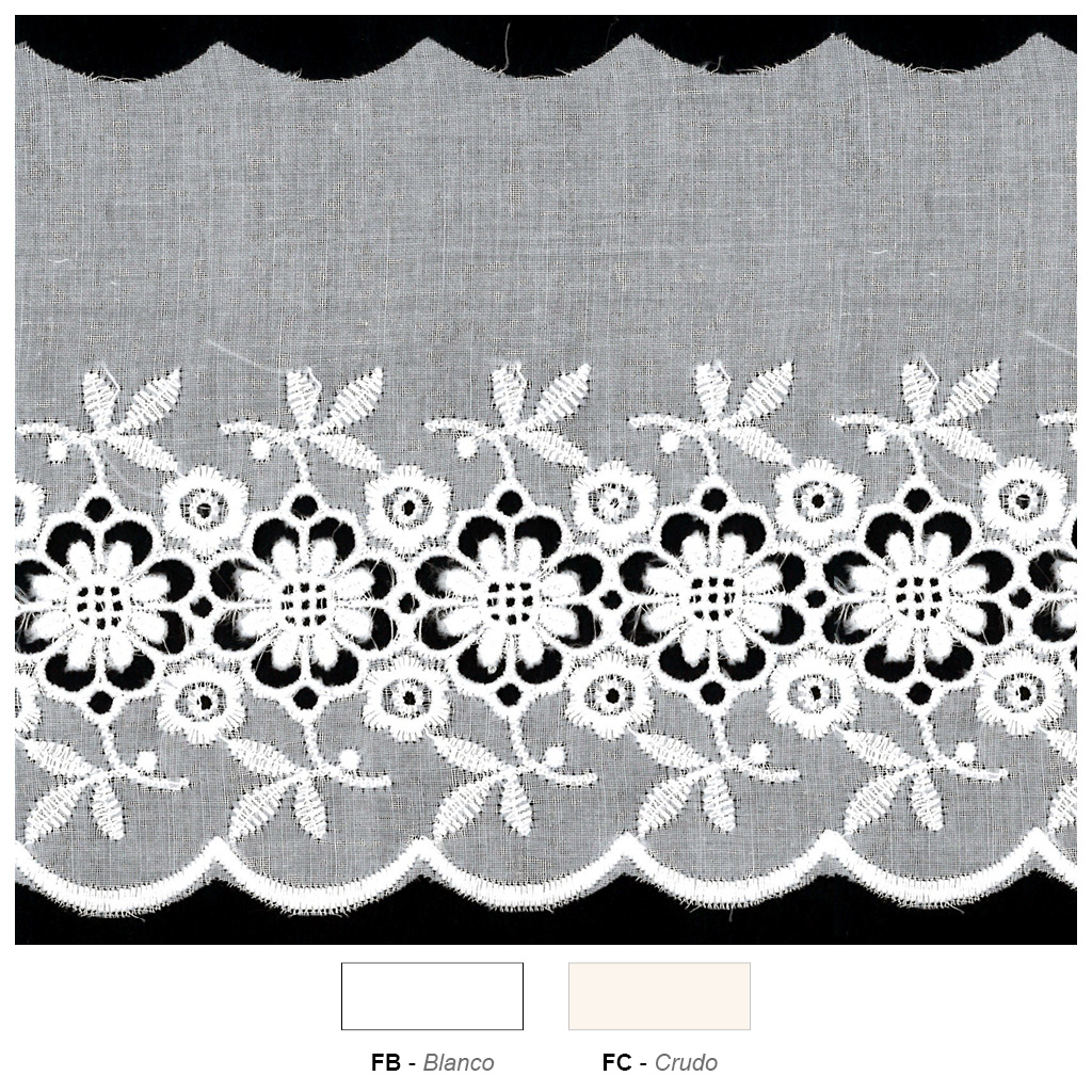 Tira bordada blanco y crudo 115 mm