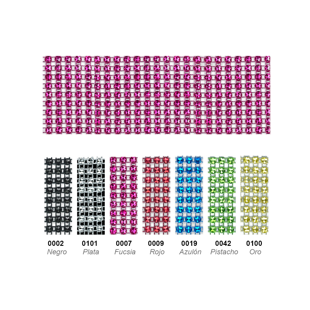 | Color | 0002 / NEGRO, 0007 / FUCSIA, 0009 / ROJO, 0019 / AZULÓN, 0042 / PISTACHO, 0100 / ORO, 0101 / PLATA |