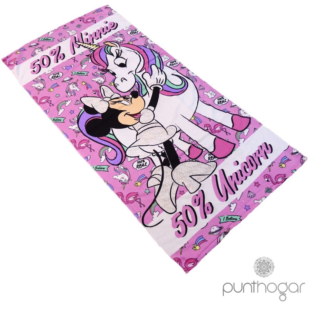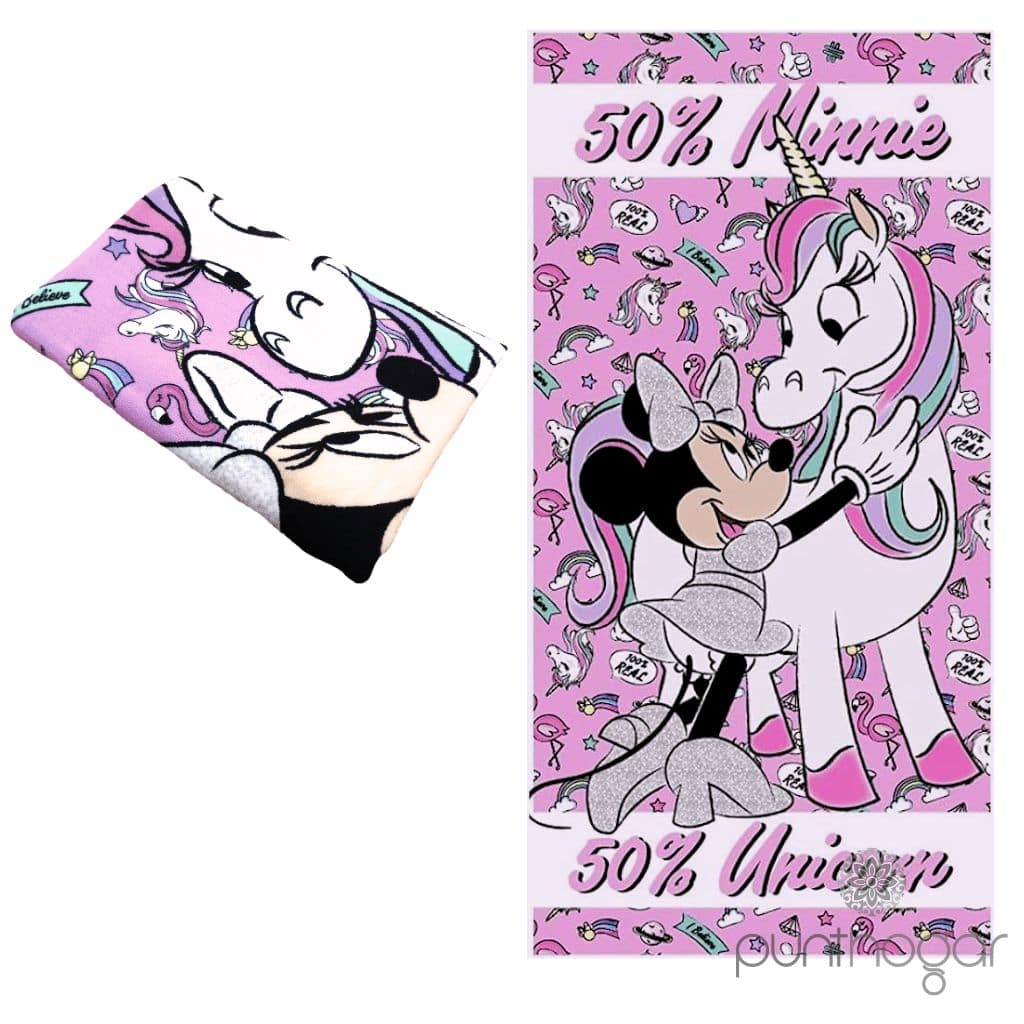 Toalla de playa Disney 70×140 con licencia oficial de la presumida ratoncita Minnie con su amigo unicornio en microfibra 100% poliéster para llevártela a la piscina o playa. Es de secado rápido, pesa poco y se puede llevar en la mochila, bolsa de deporte o bolsa de playa.
