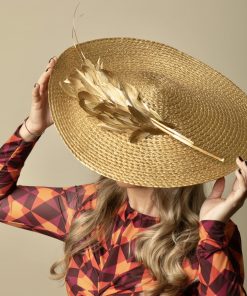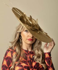 Descubre nuestro exclusivo tocado con raquis y detalle metálico dorado: ¡la elección perfecta para lucir elegante y sofisticada! Nuestro tocado combina a la perfección la belleza del raquis con el brillo deslumbrante del detalle metálico dorado. Confeccionado con materiales de alta calidad, este accesorio de moda para invitadas a bodas te garantiza un aspecto impecable a un precio asequible.