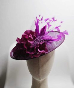 TC51072 – Elegante tocado tipo plato en tono morado es la opción perfecta para eventos de día como invitada o madrina de ceremonia. Está decorado con flores de tela en tonos morados, delicadas plumas y un sutil velo que aporta un toque romántico y distinguido. Su forma redondeada aporta estructura y estilo, mientras que su diseño ligero permite un uso cómodo durante horas. Es el complemento ideal para lucir un look refinado y moderno sin dejar de ser clásico. Lo puedes llevar cómodamente sujeto con pinzas o diadema.