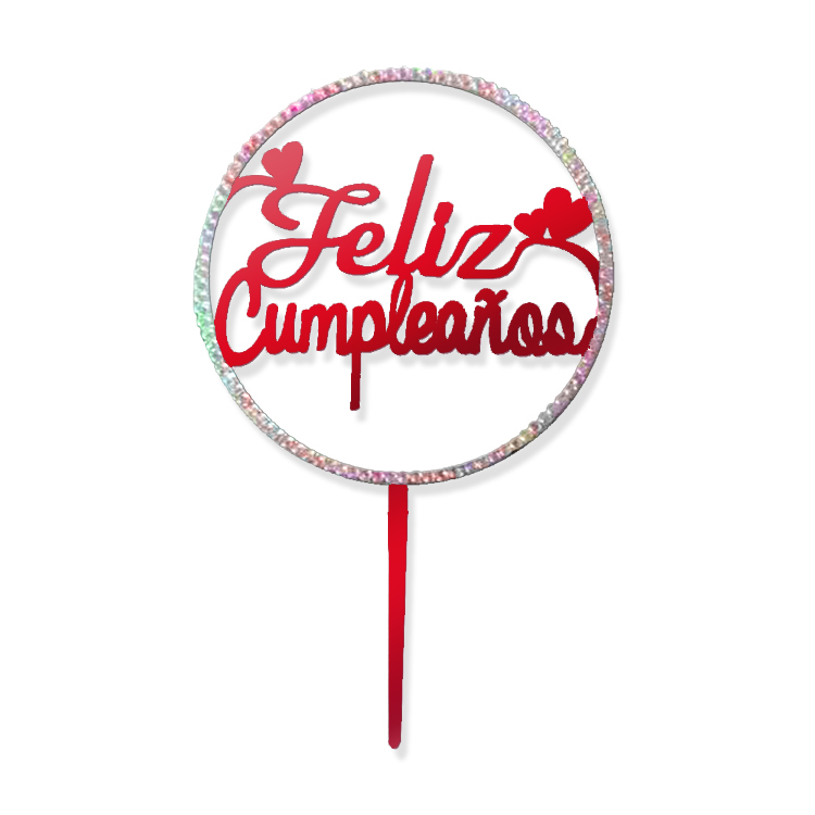 Topper para Torta Roja con Strass – Brillo Feliz Cumpleaños x1 Unidad