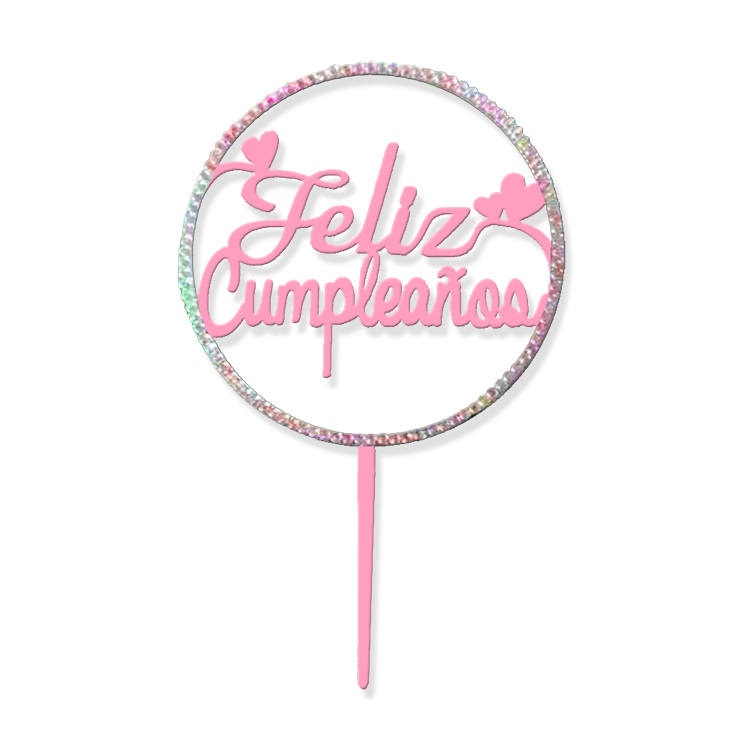 Topper para Torta Rosa Pastel con Strass – Brillo Feliz Cumpleaños x1 Unidad
