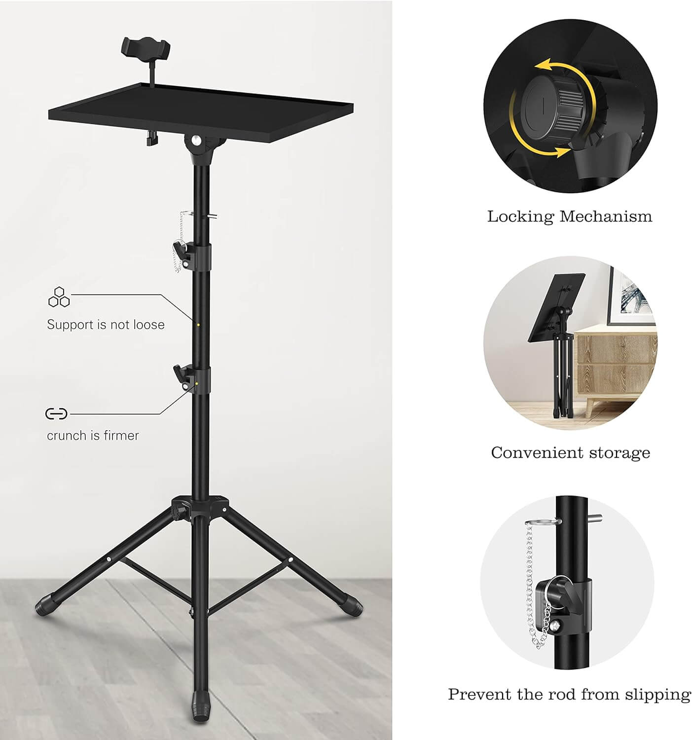 - Compatibilidad universal: el soporte para la bandeja del proyector mide 14.9 x 11.2 pulgadas y soporta portátiles, grabadoras, proyectores, notas, libros, dispositivos de medios de sonido y más para músicos, DJs, artistas, ingenieros, profesores y estudiantes