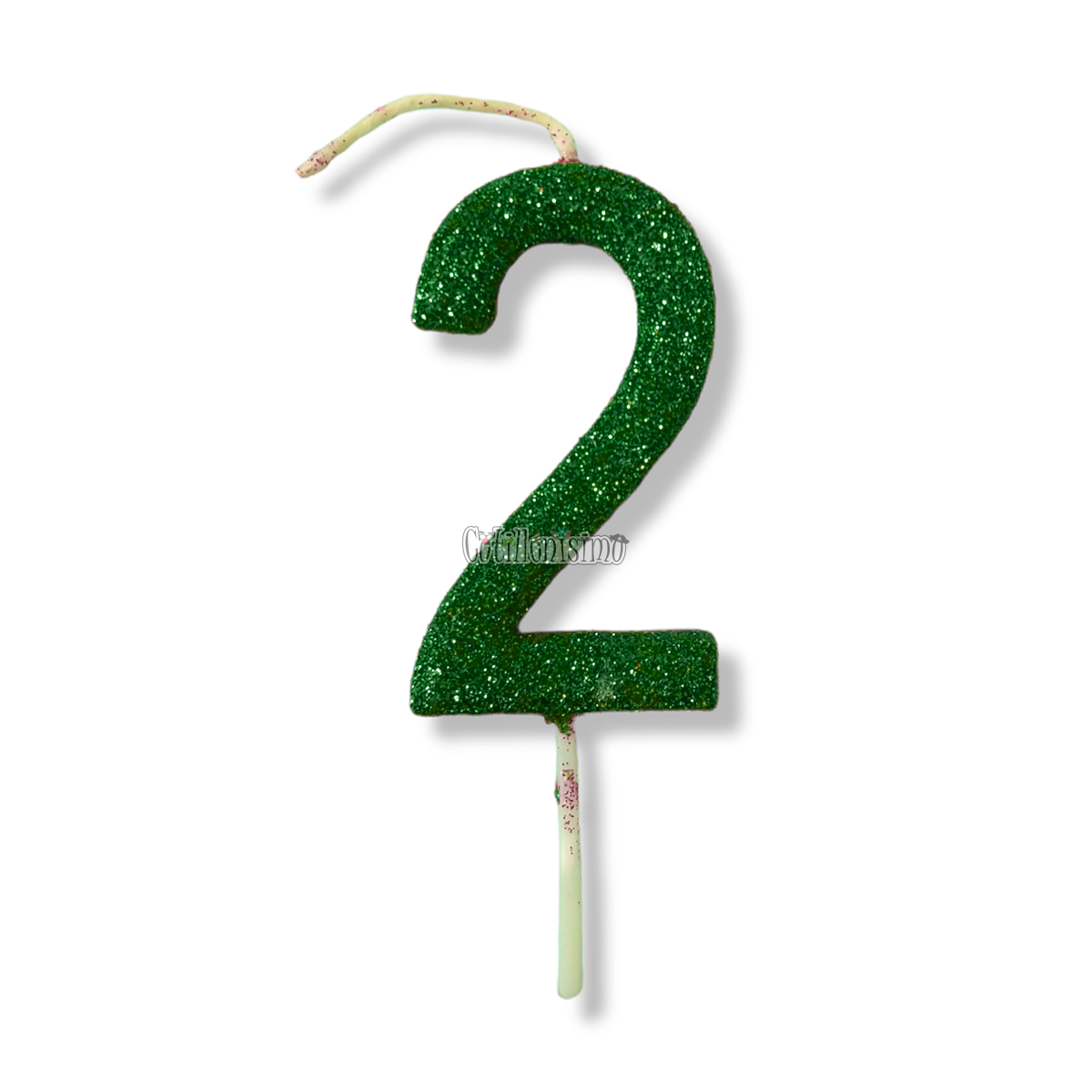 Vela Gibreada Numero 2 Color Verde Oscuro 11cm