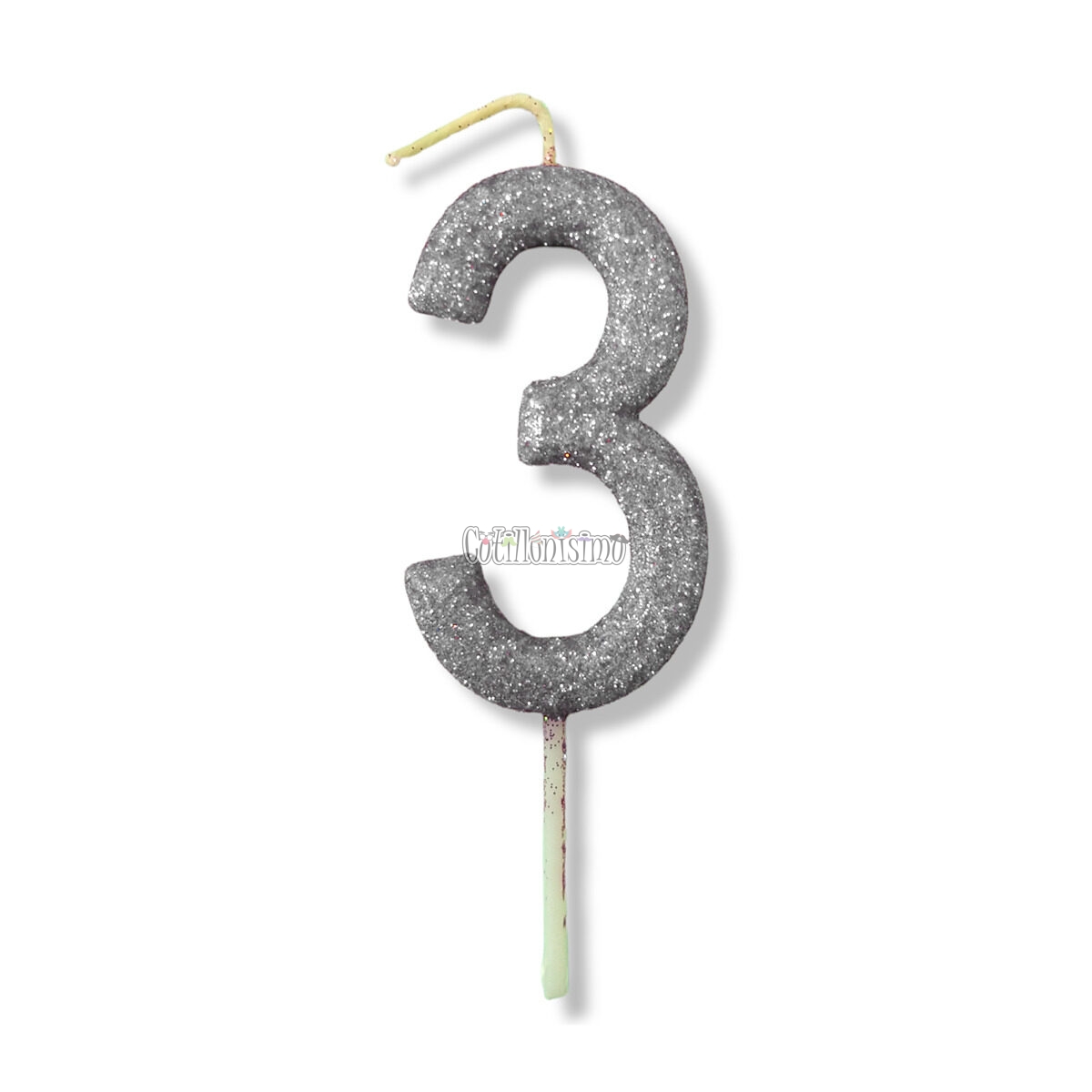 Vela Gibreada Numero 3 Color Plateado 11cm