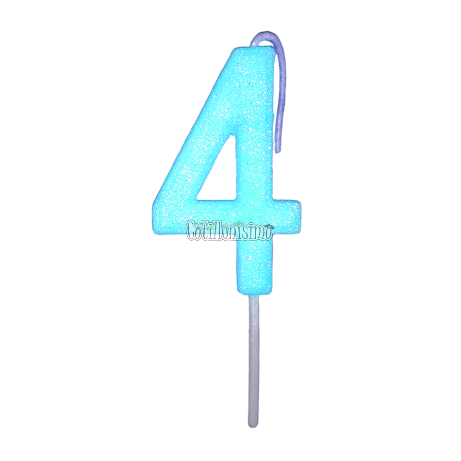 Vela Gibreada Numero 4 Color Celeste 11cm
