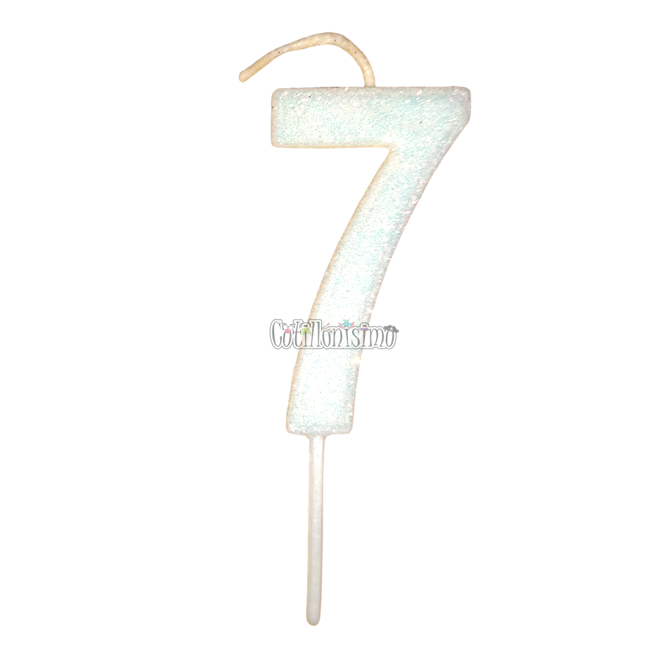 Vela Gibreada Numero 7 Color Blanco 11cm
