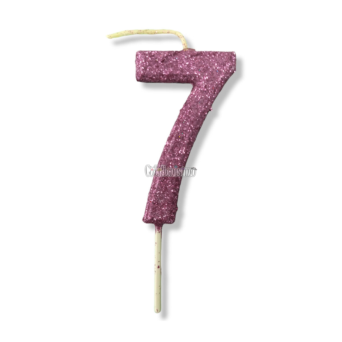 Vela Gibreada Numero 7 Color Rosa Gold 11cm