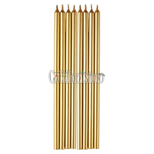 Vela Larga Metalizada Color Dorado x8u 16cm