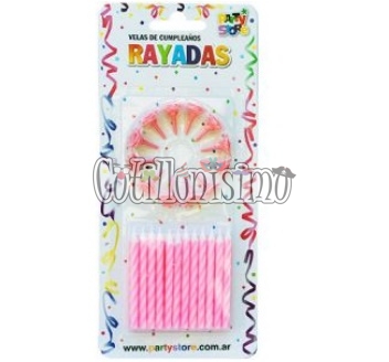 Vela Rayada Torneada Rosa X24u con 12 Bases