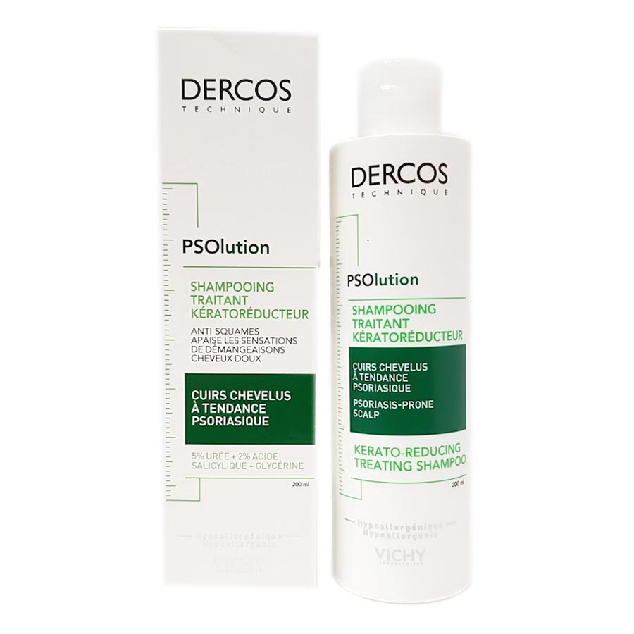 DERCOS SHAMPOO PSOLUTION es un champú que limpia el cabello al mismo tiempo que calma el cuero cabelludo propenso a la psoriasis. Con una textura agradable que hace buena espuma y es fácil de enjuagar, este champú ofrece una acción queratoreductora que promueve la salud del cabello y el cuero cabelludo. Adecuado incluso para cuero cabelludo sensible, el champú es hipoalergénico y se puede usar a diario.