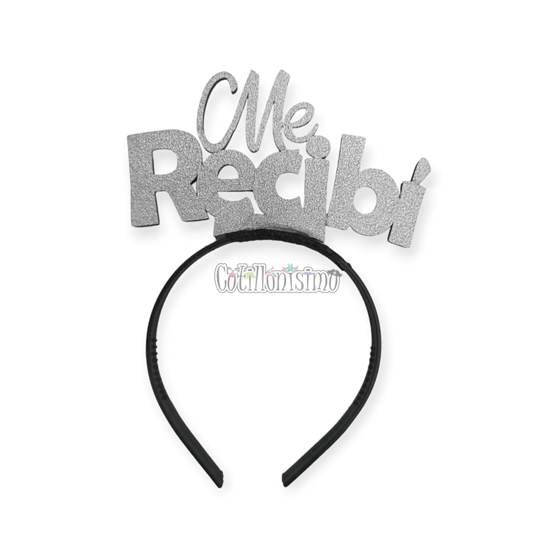 Vincha Goma Eva Me Recibi Plateado Glitter