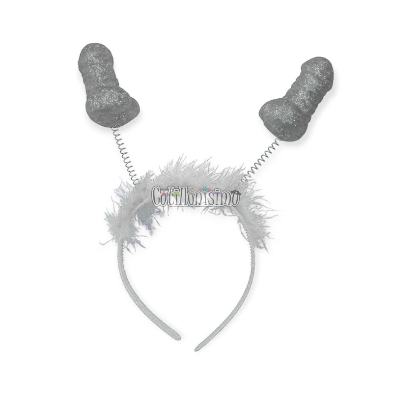 Vincha Resorte Penecitos – Penes Telgopor Brillo Glitter con Plumas Plateadas x1 Unidad