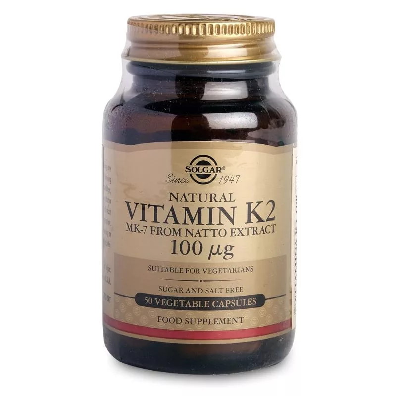 Vitamina K2 100 μg de Solgar contiene Vitamina K que desempeña un papel importante en la formación de los huesos y en la coagulación de la sangre. Solgar utiliza la forma natural de alta biodisponibilidad de la vitamina K, la menaquinona-7 (versión patentada de la vitamina K2).