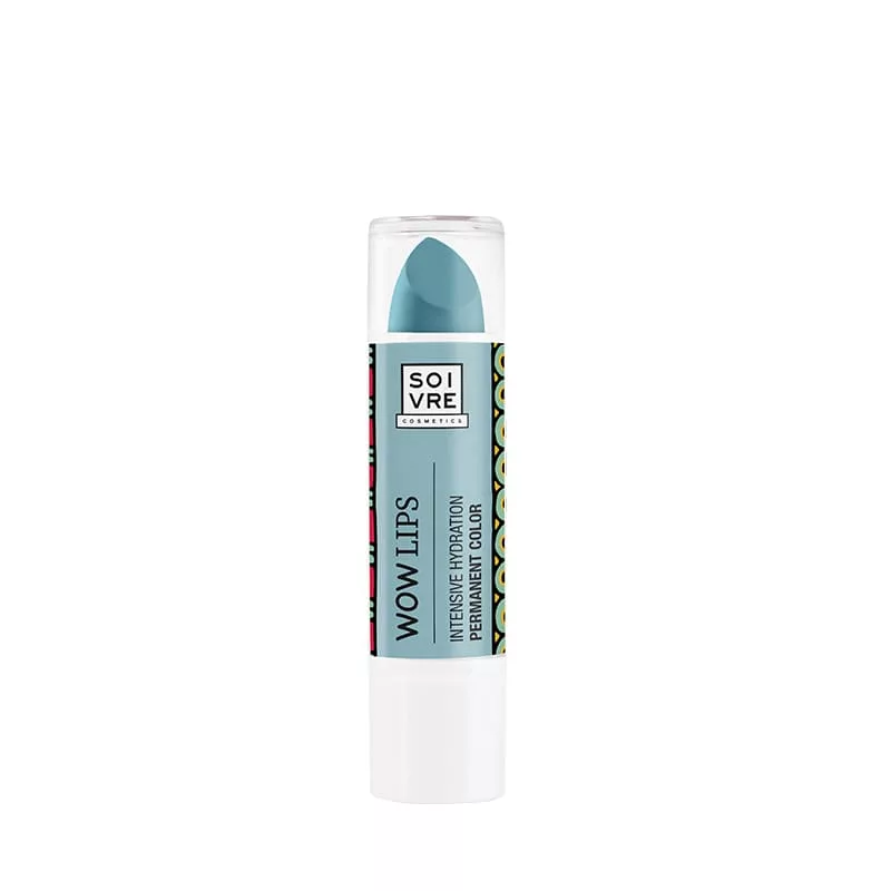 Wow Lips Azul de Soivre hidrata los labios aportando color. Cambia de color según piel. Formulado con activos naturales: manteca de cacao y Karité, aceites de Argán y Marula. De azul cambia a violeta.