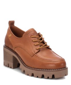 Zapato de mujer, de la marca Carmela. Fabricado en piel de alta calidad. Cierre mediante cordones ajustables. Tirador trasero para facilitar la puesta. Tacón ancho de 7 cm con suela track antideslizante.