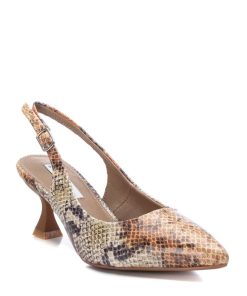 Zapato de mujer, de la marca Xti. Fabricado en material que imita a la piel de serpiente. Cierre de hebilla para sujetar el tobillo. Tacón de 5 cm de altura con suela de goma antideslizante. Este modelo ha obtenido el certificado vegano por la organización mundial PETA (Organización de los derechos de los animales).
