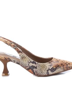 Zapato de mujer, de la marca Xti. Fabricado en material que imita a la piel de serpiente. Cierre de hebilla para sujetar el tobillo. Tacón de 5 cm de altura con suela de goma antideslizante. Este modelo ha obtenido el certificado vegano por la organización mundial PETA (Organización de los derechos de los animales).