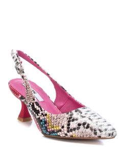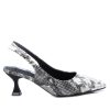 Zapato de mujer, de la marca Xti. Fabricado en material que imita a la piel de serpiente. Cierre de hebilla para sujetar el tobillo. Tacón de 5 cm de altura con suela de goma antideslizante. Este modelo ha obtenido el certificado vegano por la organización mundial PETA (Organización de los derechos de los animales).