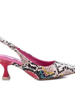 Zapato de mujer, de la marca Xti. Fabricado en material que imita a la piel de serpiente. Cierre de hebilla para sujetar el tobillo. Tacón de 5 cm de altura con suela de goma antideslizante. Este modelo ha obtenido el certificado vegano por la organización mundial PETA (Organización de los derechos de los animales).