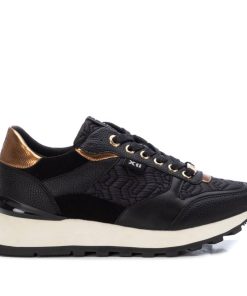 Zapatilla de mujer, de la marca Xti. Fabricada en textil acolchado combinado con material que imita la piel. Efecto charol en la parte trasera. Cierre mediante cordones regulables. Cómoda suela de 4 cm de goma antideslizante. Una zapatilla ideal para el día a día. Con plantilla extraíble. Este modelo ha obtenido el certificado vegano por la organización mundial PETA (Organización de los derechos de los animales).