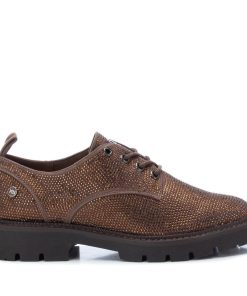 Zapato de mujer, de la marca Xti. Fabricado en antelina con piedras decorativas de fantasía. Cordones ajustables. Tirador trasero para facilitar la puesta. Suela dentada de goma antideslizante. Con este zapato serás el centro de todas las miradas. Este modelo ha obtenido el certificado vegano por la organización mundial PETA (Organización de los derechos de los animales).