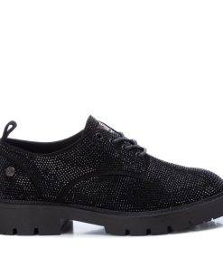 Zapato de mujer, de la marca Xti. Fabricado en antelina con piedras decorativas de fantasía. Cordones ajustables. Tirador trasero para facilitar la puesta. Suela dentada de goma antideslizante. Con este zapato serás el centro de todas las miradas. Este modelo ha obtenido el certificado vegano por la organización mundial PETA (Organización de los derechos de los animales).