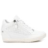Zapatilla con cuña de mujer, de la marca Xti. Fabricada en material que imita la piel con acabado metalizado y con detalle de troquelado decorativo. Cierre mediante cordones ajustables y cremallera lateral para aportar falicidad en el calce. Suela de goma antideslizante. Ideal para aportar unos cm con total confort. Este modelo ha obtenido el certificado vegano por la organización mundial PETA (Organización de los derechos de los animales).