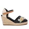 Alpargata de mujer, de la marca Xti. Fabricada en material de rafia con piedras decorativas. Correa al tobillo de material imitación a piel con hebilla para un buen ajuste. Cuña de 7 cm con plataforma delantera forrada en yute al tono del corte. Suela antideslizante. Este modelo ha obtenido el certificado vegano por la organización mundial PETA (Organización de los derechos de los animales).
