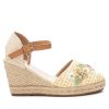 Alpargata de mujer, de la marca Xti. Fabricada en material de rafia con piedras decorativas. Correa al tobillo de material imitación a piel con hebilla para un buen ajuste. Cuña de 7 cm con plataforma delantera forrada en yute al tono del corte. Suela antideslizante. Este modelo ha obtenido el certificado vegano por la organización mundial PETA (Organización de los derechos de los animales).