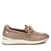 Mocasín de mujer, de la marca Xti. Fabricada en un material que imita la piel. Antifaz con aplique metalizado en el frente. Suela de goma antideslizante. Un clásico para tu armario. Con plantilla extraíble. Este modelo ha obtenido el certificado vegano por la organización mundial PETA (Organización de los derechos de los animales).