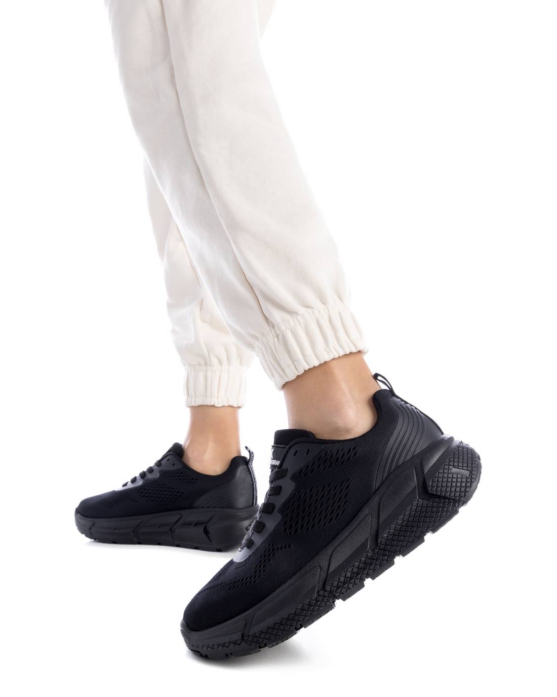 Zapatilla de mujer, de la marca Xti. Fabricada en tejido elástico. Cierre cordonera. Tirador en la parte trasera para facilitar la puesta. Suela de goma antideslizante. Con plantilla extraíble. Este modelo ha obtenido el certificado vegano por la organización mundial PETA (Organización de los derechos de los animales).