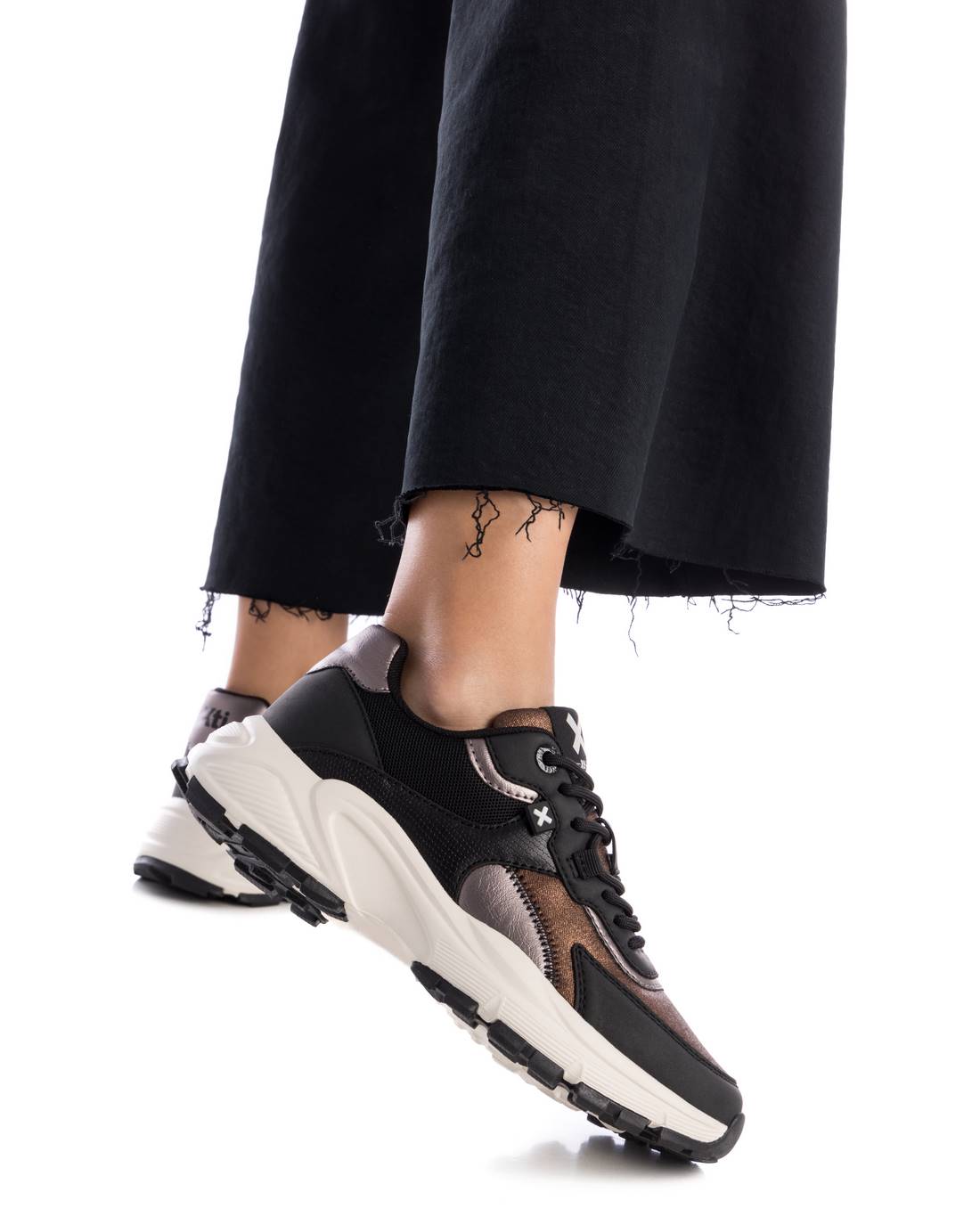 Zapatilla de mujer, de la marca Xti. Fabricada en material que imita la piel. Cierre cordonera para mayor ajuste. Detalles metalizados. Suela de goma antideslizante. Con plantilla extraíble. Este modelo ha obtenido el certificado vegano por la organización mundial PETA (Organización de los derechos de los animales).