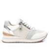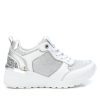 Zapatilla de mujer, de la marca Xti Basic. Fabricada en tejido brillante combinado con material que imita la piel. Cierre mediante cremallera lateral y cordones para un mayor ajuste. Cómoda suela de goma antideslizante con una pequeña cuña. Este modelo ha obtenido el certificado vegano por la organización mundial PETA (Organización de los derechos de los animales).