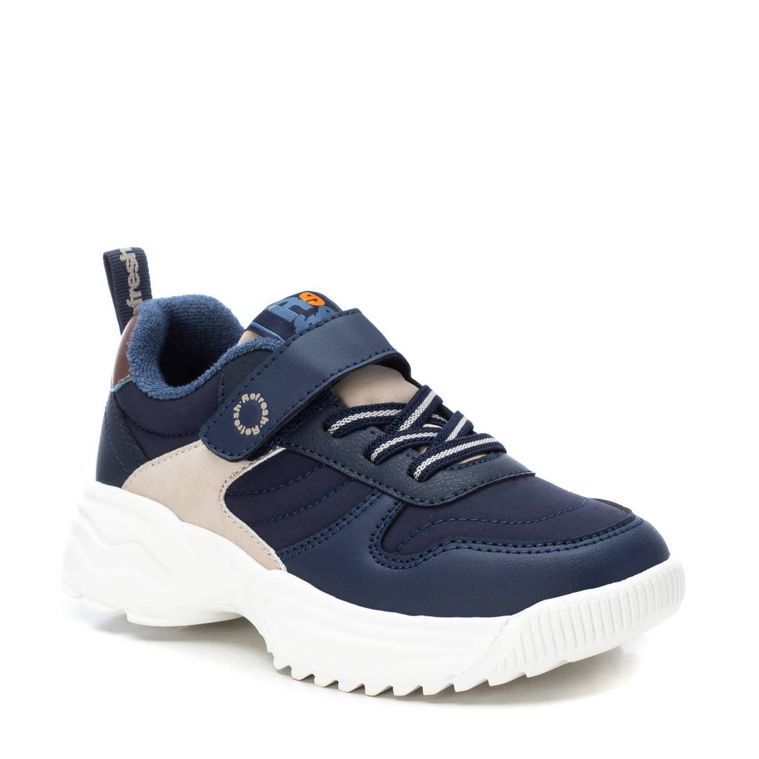 Zapatilla de niña, de la marca Refresh. Fabricada en material que imita la piel combinado con textil. Cierre mediante tira adhesiva. Cordones elásticos. Tirador trasero para facilitar la puesta. Suela volumen de goma antideslizante. Este modelo ha obtenido el certificado vegano por la organización mundial PETA (Organización de los derechos de los animales).