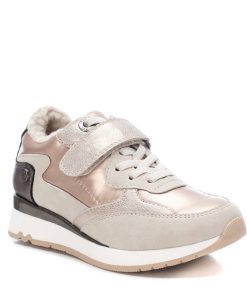 Zapatilla de niña, de la marca Xti Kids. Fabricada en textil metalizado combinado en material que imita a la piel. Cierre mediante tira autoadherente con cordones elásticos decorativos. Zapatilla para los días más frios gracias a su confortable forro y suela aislante de goma antideslizante. Este modelo ha obtenido el certificado vegano por la organización mundial PETA (Organización de los derechos de los animales).