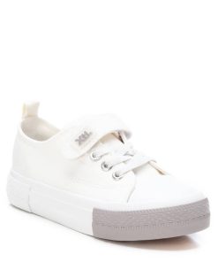 Zapatilla de niña y de niño, de la marca Xti Kids. Fabricada en resistente lona. Cierre adherente con cordones elásticos. Original suela de goma antideslizante. Clásico diseño que no puede faltar esta temporada para completar los looks más casual de los pequeños. Este modelo ha obtenido el certificado vegano por la organización mundial PETA (Organización de los derechos de los animales).