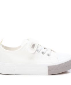 Zapatilla de niña y de niño, de la marca Xti Kids. Fabricada en resistente lona. Cierre adherente con cordones elásticos. Original suela de goma antideslizante. Clásico diseño que no puede faltar esta temporada para completar los looks más casual de los pequeños. Este modelo ha obtenido el certificado vegano por la organización mundial PETA (Organización de los derechos de los animales).