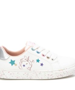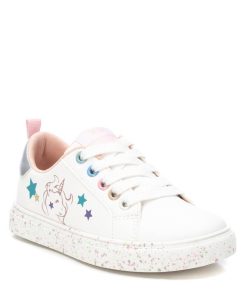 Zapatilla con cordones de la marca Xti Kids. Fabricada en material que imita a la piel. Con un bonito estampado de fantasía en el lateral. Tirador trasero para facilitar la puesta. Piso moteado con resistente suela de goma antideslizante. Un modelo casual para las peques de la casa. Este modelo ha obtenido el certificado vegano por la organización mundial PETA (Organización de los derechos de los animales).