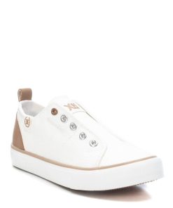 Zapato de niño, de la marca Xti Kids. Fabricado en lona con talonera en material que imita la piel. Lengueta con elástico para facilitar el calce. Gruesa suela de goma antideslizante. Este modelo ha obtenido el certificado vegano por la organización mundial PETA (Organización de los derechos de los animales).
