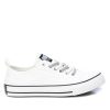Zapatilla de niña, de la marca Xti Kids. Fabricada en resistente lona. Cierre mediante doble cordones elásticos. Tirador trasero para facilitar la puesta. Original forma de onda de goma con suela de goma antideslizante. Un icónico diseño que no puede faltar en tu fondo de armario. Este modelo ha obtenido el certificado vegano por la organización mundial PETA (Organización de los derechos de los animales).